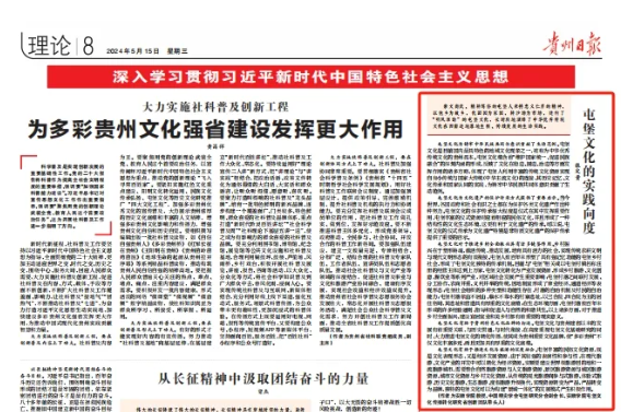 贵州日报理论版刊登《屯堡文化的…