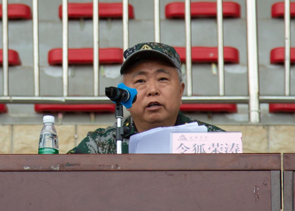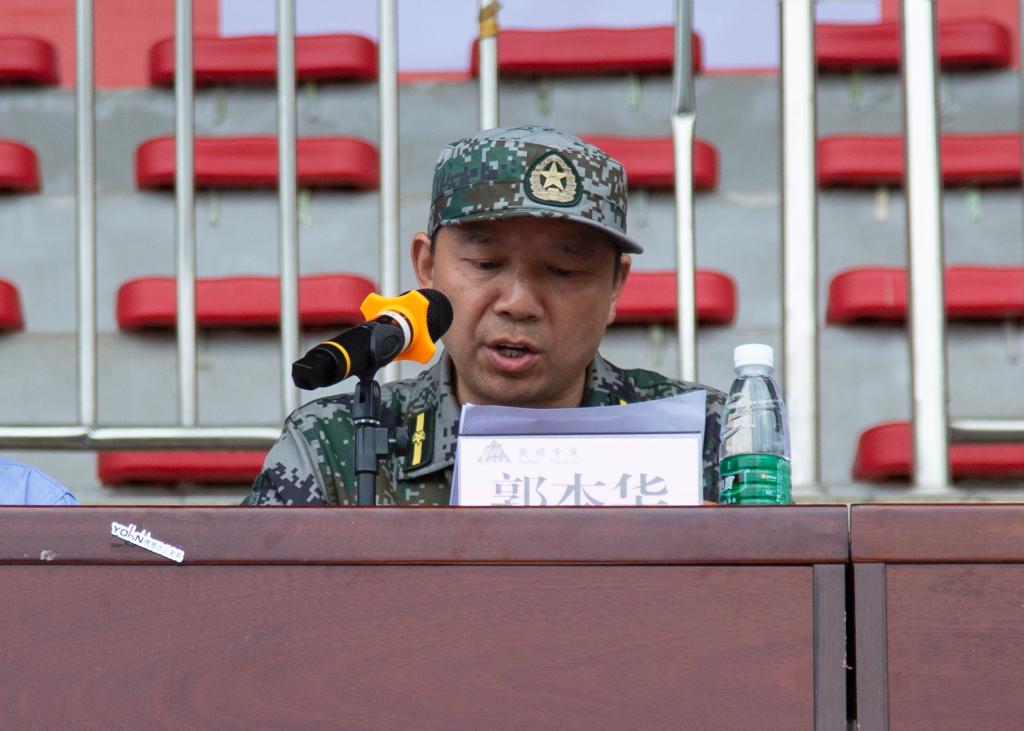 黄贺同志代表全体军训教官表示将严格自身要求,以良好的形象和精神状态高标准完成好军训任务,认真执行军训的各项规章制度;将坚持科学施训,文明施训,安排好训练时间和内容,循序渐进,逐步提高;将以身作则,培养严明的作风纪律,培养同学们令行禁止、不怕苦累、勇敢顽强、勤俭节约的优良作风。同时,他也表示会与新兵共同成长,“我们教官也会以身作则,陪伴在新兵身边,共同努力完成军训训练任务。”