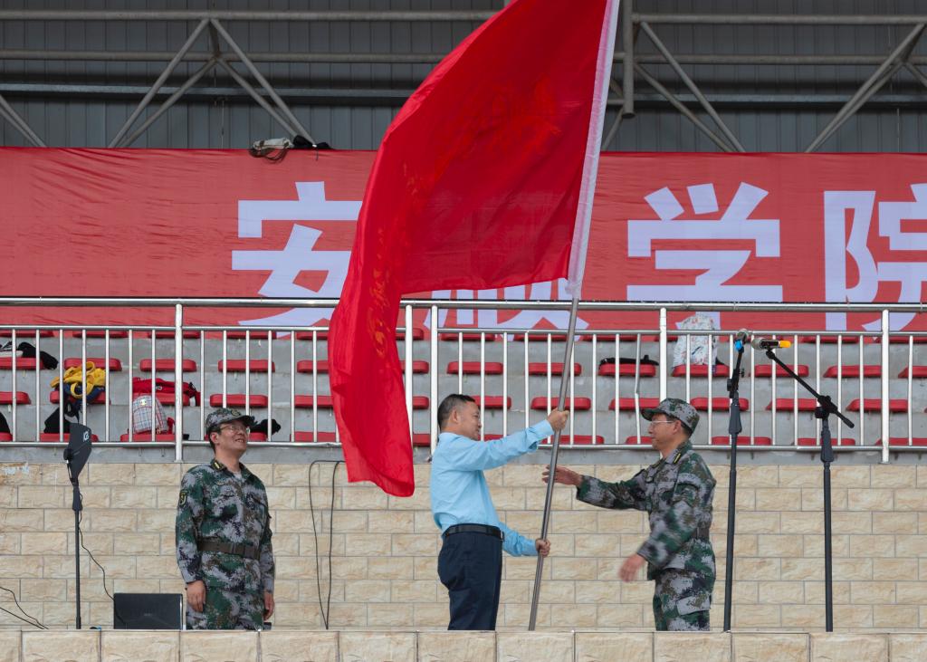 bwin必赢校长吴次南向军训团副团长蔡少平同志授予军训团团旗