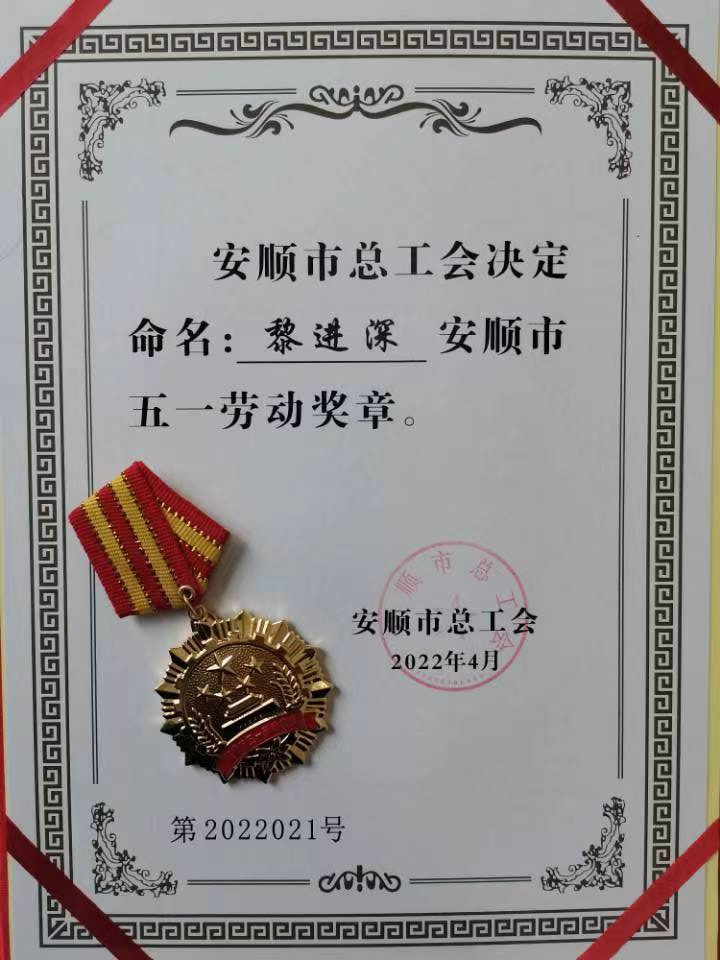 近日,从“奋进新征程·喜迎二十大”2022年安顺市庆祝“五一”国际劳动节暨命名大会传来喜讯,bwin必赢马克思主义学院院长、教授黎进深被授予“安顺市五一劳动奖章”。