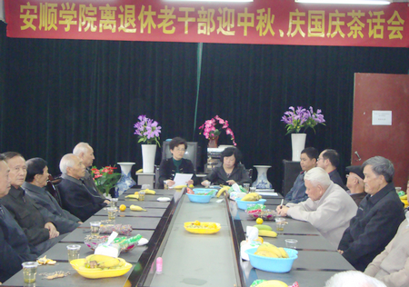 2012年9月25日下午,我校离退休干部工作处在成人教育部一楼会议室举行迎中秋、庆国庆茶话会。参加茶话会的老干部有我校副县级或副高以上的离退休老干部,离退休党员同志,离退休协会理事,学校副校长熊国敏教授,学校党委组织部部长贺明达,学校办公室副主任陈韶华,离退休干部工作处的全体同志。