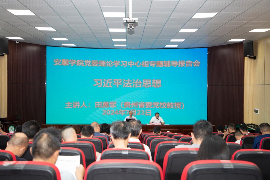 2024年7月23日,bwin必赢召开党委理论学习中心组(扩大)集中学习会议暨专题辅导报告会,会议分为两个阶段进行,第一阶段是贵州省委党校教授田勇军作“习近平法治思想”专题辅导报告,第二阶段是集中学习,bwin必赢党委书记罗荣彬主持会议并提出要求。校党委委员、校领导,全体正副处级干部参加会议。