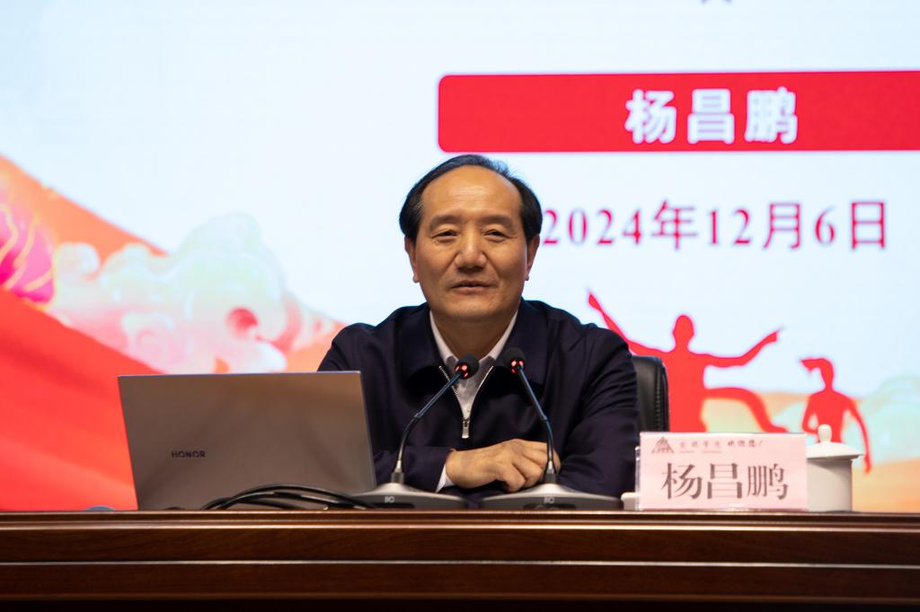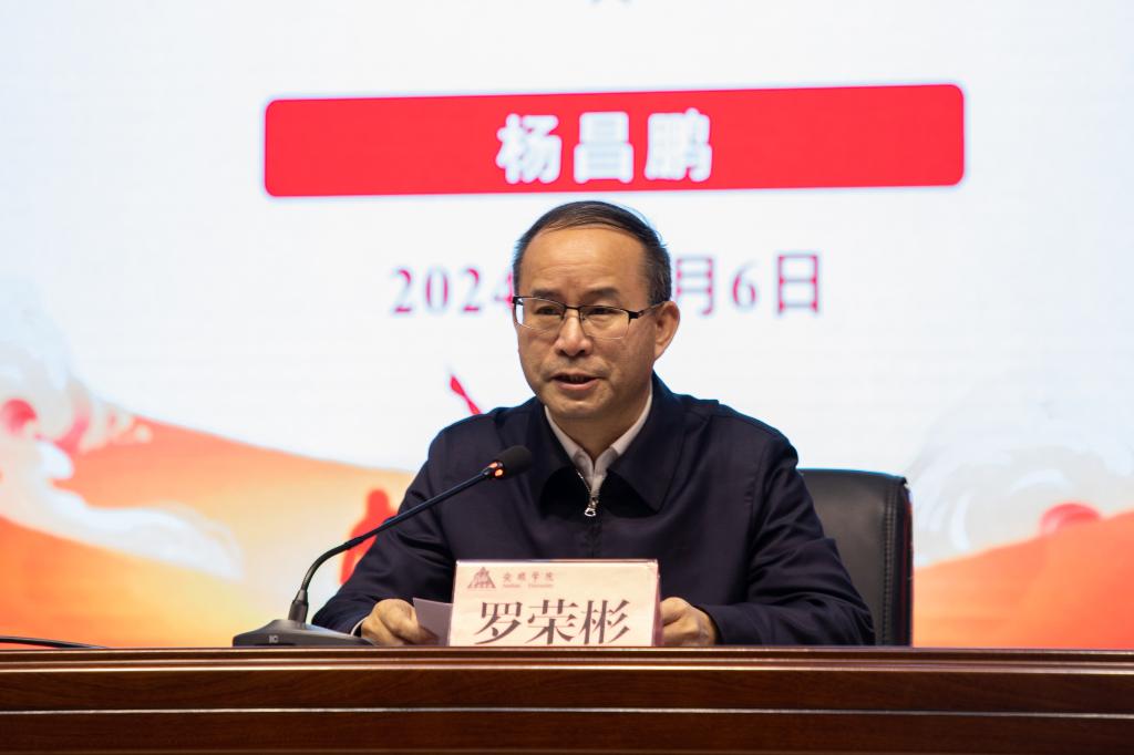 12月6日下午,安顺市委书记杨昌鹏在bwin必赢学术报告厅以“立报国强国大志向,做挺膺担当奋斗者——在谱写中国式现代化安顺篇章中贡献青春力量”为主题,为bwin必赢师生讲授思想政治理论课。bwin必赢党委书记罗荣彬主持。