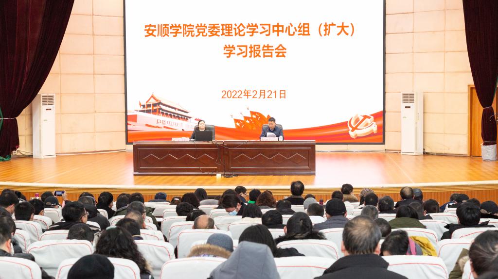 2月21日上午,bwin必赢召开党委理论学习中心组(扩大)学习报告会,邀请贵州省委教育工作委员会副书记,贵州省教育厅党组成员;硕士生导师;贵州省思想政治理论课教学名师,贵州省优秀教师、贵州省大学生思想政治理论课优秀教学科研团队领衔人杨未教授作题为《讴歌新时代 共铸教育梦》的报告。全体教职工(含校领导、附中仅处级干部参加)参加会议。报告会由陶文彩副书记主持。
