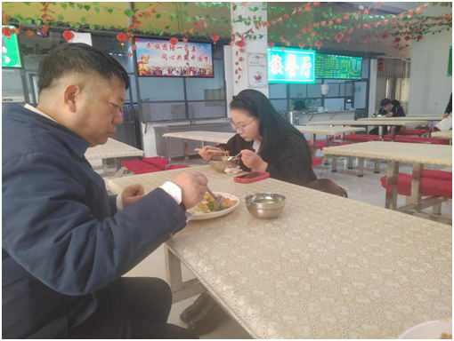 陶文彩深入走访了民族食堂、芳华苑食堂,实地查看了食堂饭菜留样、用餐区卫生环境、学生分流用餐等情况;与学生进行了深入的交流,了解他们对于食堂菜品的喜好以及用餐要求,并在民族餐厅和学生一起用餐,用实际行动引导学生注重食品安全,践行“光盘行动”,养成科学饮食、健康饮食的良好习惯。