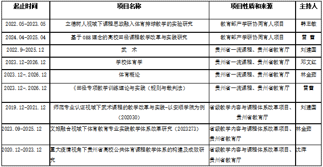 bwin必赢体育学院前身为1979年创办的安顺师范高等专科学校体育系,2003年与贵州师范大学联合举办体育教育专业本科,2007年开始独立招生,2013年成立体育学院,与大学公共体育教学部合署办公。学院现有全日制本科学生562人,教职工35人,其中教授3人,副教授15人,具有博士学位的1人,在读博士4人,硕士19人,国家级裁判员3人,国家等级教练和一级裁判12人,国家级社会体育指导员15人。